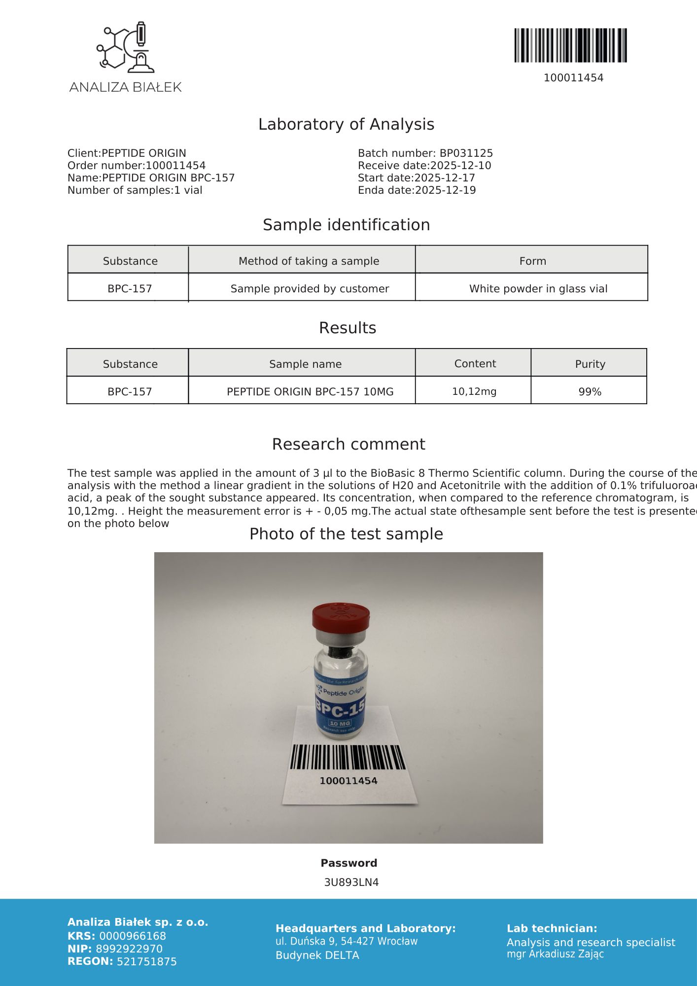 Certificate of Analysis (COA) available – please see below latest batch documentation.